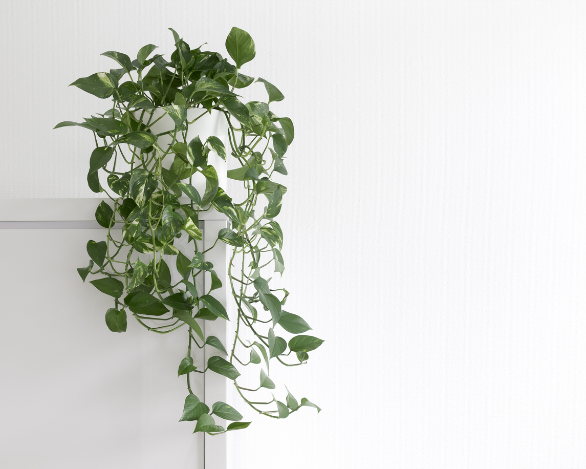 Also known as Devil’s ivy, pothos is drought-resistant, which makes it a smart pick for anyone who occasionally forgets to water. It also grows well in shade with filtered light, and its cascading vines work well on cabinets and shelves.